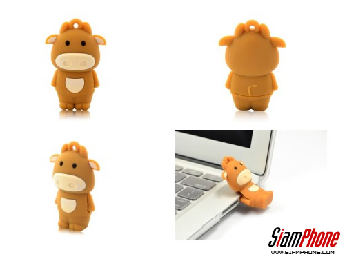 USB รูปวัว (สัตว์ประจำปีฉลู) ออกแบบด้วยลวดลายที่น่ารัก เป็นรูปวัวตัวผู้สีน้ำตาลอ่อน ที่ทำจากซิลิโคนคุณภาพ ขนาด 48x32x17 มิลลิเมตร น้ำหนัก 12 กรัม