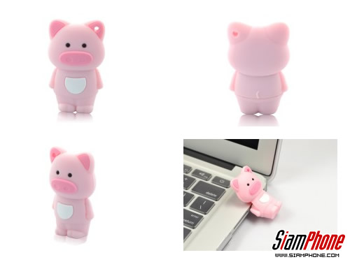 USB รูปหมู (สัตว์ประจำปีกุน) ถูกออกแบบมาเป็นหมูสีชมพูอ้วนกลม ทำจากซิลิโคนหนานุ่ม ขนาด 44x27x16 มิลลิเมตร น้ำหนัก 17 กรัม