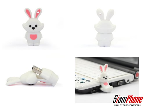 USB รูปกระต่าย (สัตว์ประจำปีเถาะ) ด้วยรูปลักษณ์ของกระต่ายน้อยสีขาว ทำให้ดูน่ารัก น่าทะนุถนอม ซึ่งทำจากซิลิโคนเนื่อนุ่ม ขนาด 56x31x14.5 มิลลิเมตร น้ำหนัก 17 กรัม