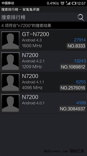 ผลทดสอบประสิทธิภาพความแรงของ Samsung Galaxy Note 3 โผล่บนเว็บไซต์ AnTuTu แล้ว แม้เราจะไม่ได้เห็นภาพตัวเครื่องปรากฏออกมาก็ตาม แต่คะแนนที่ได้ก็ไม่ได้ทำให้ผิดหวัง เพราะมีความแรงใกล้เคียงกับสมาร์ทโฟนรุ่นท๊อปอย่าง Samsung Galaxy S4 โดยมีคะแนนสูงถึง 27914 แต้ม และผลทดสอบดังกล่าวก็ทำให้ทราบว่า CPU ที่นำใช้งานนั้นมีความเร็ว 1.6GHz (คาดว่าเป็น Samsung Exynos 5 octa-core) และรันระบบปฏิบัติการแอนดรอยด์ 4.3 ที่คาดว่าทาง Google จะเปิดตัวออกมาอย่างเป็นทางการในอีกไม่กี่เดือนข้างหน้า