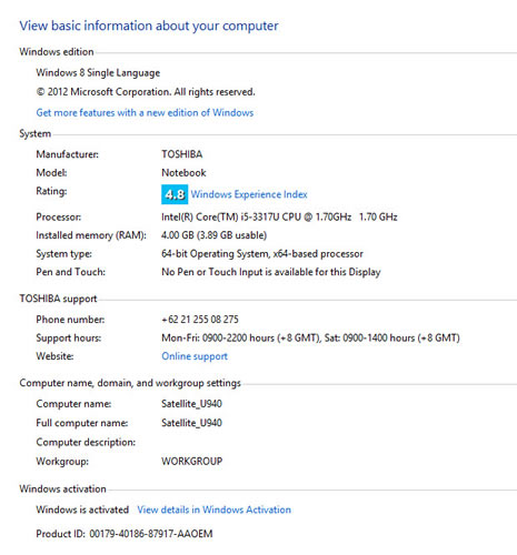 ข้อมูลสเปคเครื่อง Toshiba Satellite U940