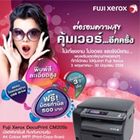 ฟูจิ ซีร็อกซ์ พรินเตอร์ ผู้นำเทคโนโลยีด้านการพิมพ์ระดับโลก ส่งต่อรอบความสุขกับโปรโมชั่นสุดร้อนแรงแห่งปี “คุ้มเวอร์” สมนาคุณให้กับลูกค้าที่กำลังมองหาเครื่องพิมพ์สีคุณภาพที่สามารถรองรับการทำงานอันหลากหลาย พิเศษสุดคุ้ม! กับเครื่องพิมพ์มัลติฟังก์ชั่นสี 3 in 1 รุ่น DocuPrint CM205b ที่มาพร้อมฟังก์ชั่นการทำงานแบบครบครัน (ทั้งพริ้น-สำเนา-สแกน) ในราคาไม่ถึงหมื่น เพียง 9,900 บาท! (ราคารวมภาษีมูลค่าเพิ่ม) พร้อมแถมบัตรกำนัลมูลค่า 500 บาททันที
