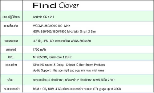ที่กล่าวมาทั้งหมดนั้นเป็นความสามารถคร่าวๆ ของ OPPO Find Clover ที่ยังมีความสามารถตอบสนองการใช้งานของคุณได้อย่างครบครันไม่ว่าจะเป็นเรื่องงาน หรือความบันเทิงได้ครบครัน โดยผู้ที่สนใจสามารถหาซื้อ OPPO Find Clover ได้แล้ววันนี้ในราคา 8,990 บาท