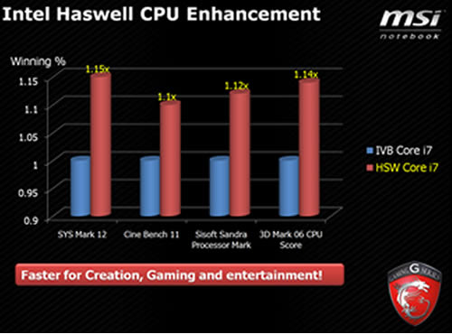เกมมิ่งโน้ตบุ๊คจาก MSI เจนเนอร์เรชั่นใหม่ล่าสุด GE70 และ GE60 มาพร้อมกับ Intel 4th generation Core i7 quad core processor หน่วยประมวลผลที่ล้ำสมัยที่สุด เพิ่มประสิทธิภาพสูงถึง 10% จากรุ่นก่อน รวมไปถึงเพิ่มความสามารถในการประหยัดพลังงานและการระบายความร้อนอีกด้วย