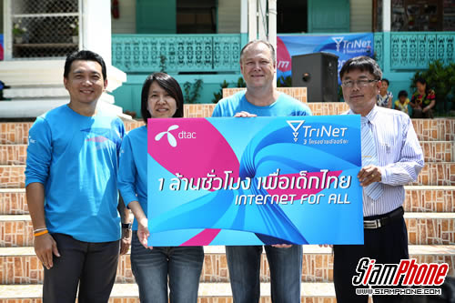 DTAC เริ่มแล้วโครงการ 1 ล้านชั่วโมงเพื่อเด็กไทย - Internet For All สนับสนุนการศึกษาเด็กไทยเสริมความรู้นอกห้องเรียนผ่าน 3G โมบายล์อินเทอร์เน็ต โดยดีแทคมอบแอร์การ์ด พร้อมซิมสำหรับใช้งาน 3G ฟรี 1 ปี ลุยนำร่องโรงเรียนบ้านปางน้ำถุ ตั้งอยู่เหนือสุดอำเภอดอยสะเก็ด จังหวัดเชียงใหม่ และเตรียมขยายความร่วมมือร่วมกับภาครัฐเพื่อสนับสนุนโรงเรียนอื่นตามหลักการทั่วประเทศ มั่นใจ 3G โมบายล์ อินเทอร์เน็ต จะกระตุ้นให้เกิดประโยชน์มหาศาลทางการศึกษาและเพิ่มคุณภาพชีวิตโดยรวมของเด็กไทยในชนบททั่วประเทศ
