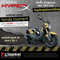 พบกับผลิตภัณฑ์ที่เต็มเปี่ยมไปด้วยนวัตกรรมชั้นนำระดับโลก ลุ้นรับของรางวัลจากสินค้าคิงส์ตันสายพันธุ์ HyperX มากมายได้ในงาน Commart Next Gen Thailand 2013 ระหว่างวันที่ 20 - 23 มิถุนายน 2556 ณ ศูนย์การประชุมแห่งชาติสิริกิติ์ สาวกไอทีห้ามพลาด!