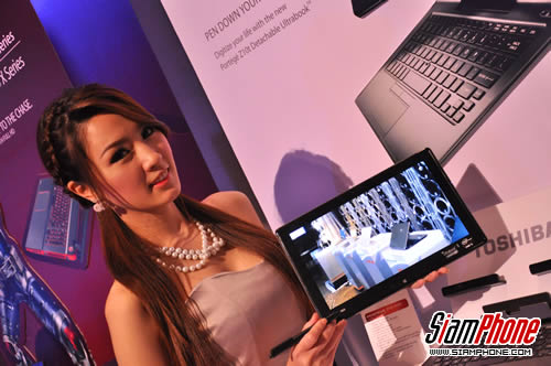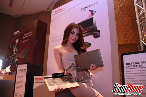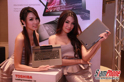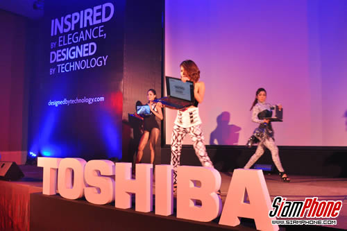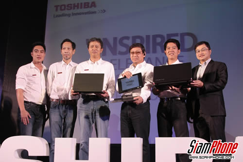นายถกล นิยมไทย ผู้จัดการทั่วไป บริษัท โตชิบา ไทยแลนด์ กล่าวว่า ตลาดสินค้าไอทีในปัจจุบัน มีการเปลี่ยนแปลงตลอดเวลา ในด้านเทคโนโลยีที่มีการพัฒนาอย่างรวดเร็ว และพฤติกรรมการใช้อุปกรณ์ไอทีของผู้บริโภคที่เริ่มพกพาอุปกรณ์มากกว่า 1 ชิ้น และเริ่มคุ้นเคยกับการทำงานด้วยระบบสัมผัส ทางด้านโตชิบามีความตั้งใจที่จะสร้างสรรค์ผลิตภัณฑ์ให้เข้าถึงผู้บริโภคในทุกกลุ่ม โดยได้คัดเลือกผลิตภัณฑ์ที่มีความโดดเด่น เข้ามาทำตลาดให้มีความหลากหลาย เพื่อตอบสนองด้านการใช้งานทุกรูปแบบ ร่วมถึงการออกแบบให้เป็นเทรนด์ที่นำสมัย ในปีนี้เราจึงวางกลยุทธ์ด้วยคอนเซ็บต์ Inspired by Elegance, Designed by Technology สำหรับผลิตภัณฑ์ไอทีทั้งหมด โดยเฉพาะ 7 ซีรี่ส์ใหม่ของโน้ตบุ๊กและแท็บเล็ต โดยเน้นความหลากหลายของฟังก์ชั่นการใช้งาน ที่สามารถตอบสนองไลฟ์สไตล์ที่ต่างกัน ทำให้ผู้บริโภคเลือกโน้ตบุ๊กที่ตรงกับความต้องการได้มากที่สุด ไม่ว่าจะเป็น Portege Z10t อัลตร้าบุ๊กประสิทธิภาพสูง น้ำหนักเบาที่สามารถถอดจอออกมาเป็นแท็บเล็ตได้ เหมาะสำหรับกลุ่มนักธุรกิจหรือผู้ที่ต้องเดินทางเป็นประจำ Qosmio X70 โน้ตบุ๊กทรงพลังเหมาะสำหรับฮาร์ดคอร์ที่ต้องการ การ์ดจอสูงๆ ระบบเสียงชั้นเยี่ยม ความทนทานสุดๆ