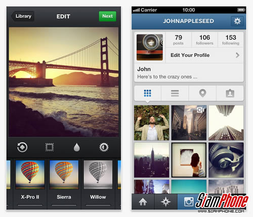 Instagram แอพพลิเคชั่นแต่งรูปพร้อมแบ่งปันช่วงเวลาที่มีคุณค่าผ่านโลกออนไลน์ โดยคุณสามารถถ่ายภาพและตกแต่งด้วยฟิวเตอร์ที่มีให้เลือกมากมาย เช่น XPro-II, Earlybird, Rise, Amaro, Hudson, Lo-fi เป็นต้น และแบ่งปันไปยังโซเชี่ยลเน็ตเวิร์กประเภทต่างๆ ได้โยยง่ายทั้ง Facebook, Twitter, Flickr, Tumblr และ Foursquare