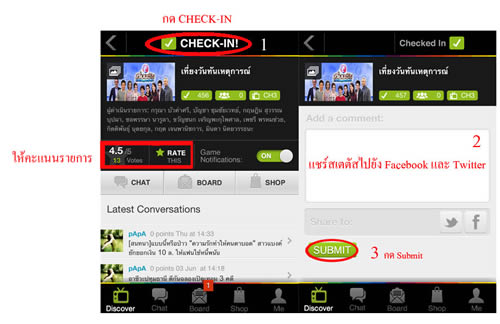 Chat & Message Board เม้าส์กันแบบสดๆกับคนที่ดูรายการเดียวกัน