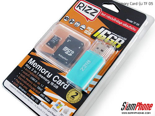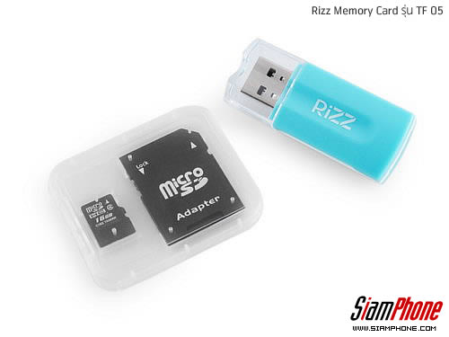 Rizz Memory Card รุ่น TF 05 เมมโมรี่การ์ดบันทึกข้อมูลรุ่นความจุ 16GB สำหรับใช้เก็บไฟล์งานเอกสาร,บันทึกรูปภาพ, เพลง, หนัง และอื่นๆ โดย Rizz Memory Card รุ่น TF 05 อ่าน-เขียนข้อมูลแบบ Hi-Speed ทำความเร็วในการอ่านได้สูงสุด 40MB/sec ผู้ใช้สามารถนำเอาการ์ดรุ่นนี้ไปใช้งานร่วมกับอุปกรณ์อื่นๆ ได้ อาทิ โทรศัพท์มือถือ, แท็บเล็ต, เครื่องเล่น MP3, กล้องดิจิตอลที่รองรับ Micro SDHC