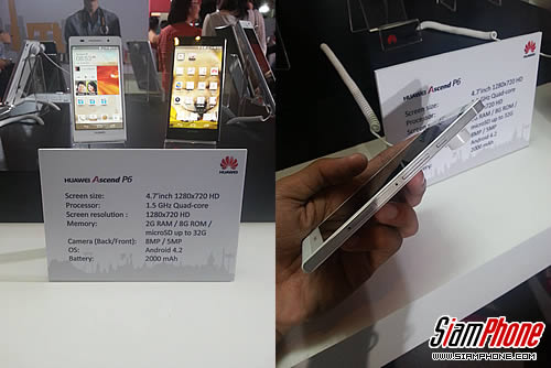 สมาร์ทโฟนหัวเว่ย Ascend P6 มีให้เลือกทั้งสีดำ ขาว และชมพู พร้อมด้วยเคสสีเข้ากับตัวเครื่อง วางจำหน่ายแล้ววันนี้ที่ร้าน เจ มาร์ท ทั่วประเทศ ในราคา 13,990 บาท และจะวางจำหน่ายผ่านทางผู้ให้บริการโทรศัพท์มือถืออย่างเอไอเอส ในเร็วๆ นี้