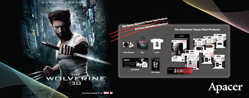 Apacer ผู้นำนวัตกรรมในด้านอุปกรณ์ดิจิตอลสตอเรจ ได้จับมือร่วมกับ 20th Century Fox เป็นครั้งที่ 4 ในปี 2013 นี้ กับการติดตามการเดินทางของตัวละครอย่าง “Wolverine” ที่นำแสดงโดย Hugh Jackman ไปยังประเทศญี่ปุ่น เพื่อตามหาความทรงจำที่หายไปของเขา ด้วยความร่วมมือจากค่ายหนังชั้นนำอย่าง 20th Century Fox กับการเปิดตัวภาพยนตร์ Wolverine ทั่วโลก ทำให้ Apacer ได้เริ่มแคมเปญ “fierce fight in Japan, pursuing lost memories” ใน 15 ประเทศทั่วโลก ซึ่งใครก็ตามที่ได้ซื้อสินค้าของ Apacer รุ่น Limited edition ในธีม Wolverine จะได้รับโอกาสที่จะได้รับเสื้อยืด T-Shirt พิเศษ ตลอดจนชุดเก็บสายเฮดโฟน แว่นตากันแดด ลำโพงกระดาษแบบ DIY กระเป๋าลาย Wolverine และอื่นๆอีกมากมาย จนกว่าสินค้าจะหมด