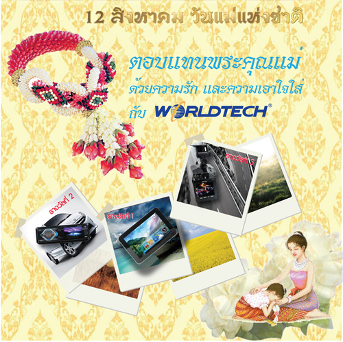 กลับมาอีกครั้ง กับกิจกรรมดีๆต้อนรับ "วันแม่แห่งชาติ" ตอบแทนพระคุณแม่ ด้วยความรักและความเอาใจใส่ กับ WORLDTECH ลุ้นรับของรางวัลจำนวน 3 รางวัล ได้แก่