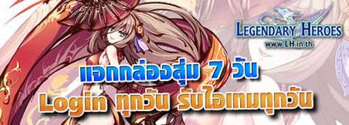 Legendary Heroes ต้อนรับน้องใหม่ด้วยการจัดกิจกรรม แจกกล่องสุ่มรายวัน เมื่อผู้เล่น Login เข้าสู่เกม ผู้เล่นจะมีสิทธิ์ ได้รับไอเทมไปใช้กันฟรีๆ ซึ่งได้ทั้งเชิร์ฟเวอร์ "Phoenix" และ "Tiger" (ใหม่) ซึ่งจะเปิดให้กระแทกคีย์บอร์ดพร้อมกันในวันที่ 1 สิงหาคมนี้ รู้แล้วอย่าลืมบอกต่อๆ และชวนเพื่อนๆ มาร่วมสนุกและเล่นกิจกรรมกันเยอะๆ นะจ๊ะ เราไปดูกันเลยว่าวันไหนได้ไอเทมอะไรบ้าง