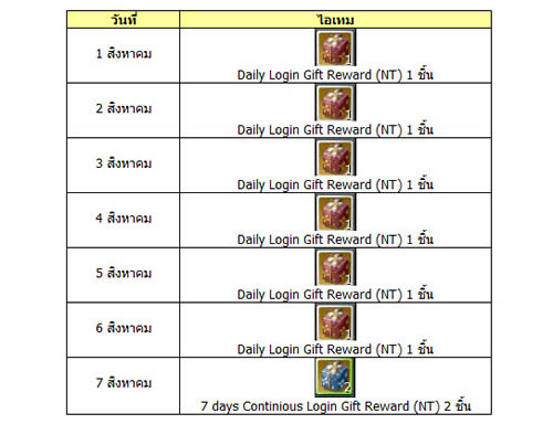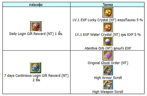 กล่องสุ่ม "Daily Login Gift Reward" และกล่องสุ่ม "Continious Login Gift Reward" มีโอกาสสุ่มได้ไอเทมแจ่มๆ มากมาย เรามาดูตัวอย่างมาจะได้ไอเทมอะไรแจ่มๆ บ้าง
