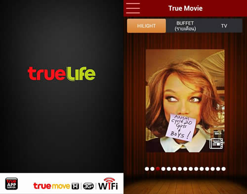 TrueLife เปิดประสบการณ์บันเทิงออนไลน์ครั้งใหม่กับ แอพพลิเคชั่น TrueMovie (รองรับการใช้งานทุกค่าย ทุกเครือข่าย ไม่จำกัด) สามารถดูหนังถูกลิขสิทธิ์ได้มากถึง 1,000 เรื่องและชมทีวีออนไลน์ได้มากกว่า 70 ช่อง มาพร้อมคุณภาพความคมชัดระดับ Full HD และคุณภาพเสียงสมจริง นอกจากนั้นยังสามารถอัพเดตข่าวบันเทิงได้อย่างรวดเร็ว ผ่านสมาร์ทโฟนหรือแท็บเล็ต ให้คุณสนุกและเพลิดเพลินได้ตลอด 24 ชั่วโมง ทุกที่ ทุกเวลา