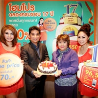 โฮมโปร “ฉลองครบรอบ 17 ปี” ช็อปคุ้มกว่าที่เคย ลดสนั่นทุกแผนก ด้วยสินค้าราคาพิเศษสุดๆ เริ่มที่ 170 บาท เพื่อเป็นการขอบคุณลูกค้า 1 ปี มีครั้งเดียว และสินค้าราคาพิเศษลดสูงสุด 70% รับเพิ่มจากโฮมโปร-บัตรเครดิตธนาคารกรุงเทพ สูงสุดเป็นประวัติการณ์รวม 96,550 บาท รับฟรี iPhone 5 ช้อปครบรับสิทธิ์แลกซื้อ LED TV 50 นิ้ว ราคา 29,999 บาท และรับคะแนนโฮมการ์ดสูงสุด 17 เท่า เตรียมช้อปได้แล้วตั้งแต่วันที่ 29 สิงหาคม – 25 กันยายน 2556 หวังกวาดยอดขายกว่า 3,000 ล้านบาท
