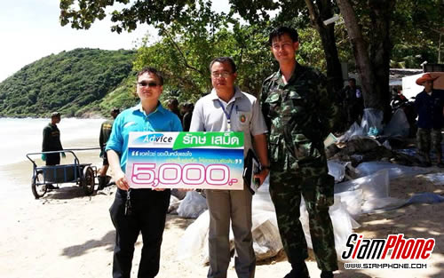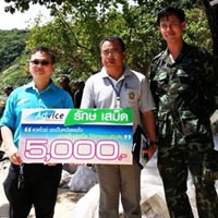 นายเอกชัย ระวีแสงสูรย์ ผู้บริหารแอดไวซ์ สาขา จังหวัดระยอง เป็นตัวแทนจากแอดไวซ์ทุกสาขาทั่วประเทศ มอบเงินแก่ตัวแทนอุทยานแห่งชาติเขาแหลมหญ้า-หมู่เกาะเสม็ด