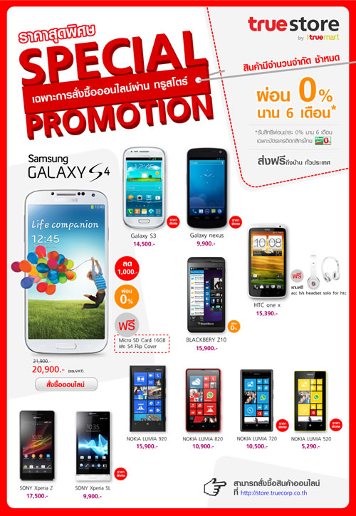 Truestore จัดโปรโมชั่นสุดพิเศษกับ Special Promotion เอาใจคอสมาร์ทโฟนโดยเฉพาะ รับสิทธิพิเศษ ผ่อน 0% นาน 6 เดือน