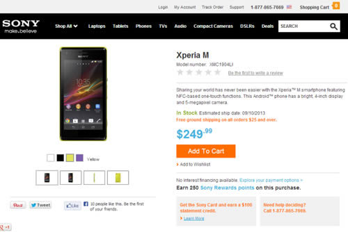 Sony Xperia M สมาร์ทโฟนระดับกลาง พร้อมรองรับการเชื่อมต่อที่ง่ายด้วย NFC ได้เปิดตัวไปแล้วในยุโรปและเอเชีย ล่าสุดมีข้อมูลพร้อมออกวางจำหน่ายในสหรัฐอเมริกา ซึ่งจะมีให้เลือกทั้งหมด 3 สี ได้แก่ สีดำ, ขาว, และสีเขียว (Lime) ยกเว้นสีม่วงที่ยังไม่มีสินค้า โดยมีราคาอยู่ที่ $249.99 หรือคิดเป็นเงินไทยประมาณ 8,000 บาท