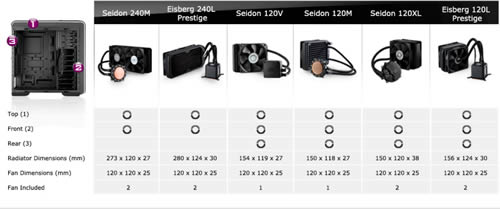 CM 690 III รองรับระบบระบายความร้อนด้วยหรือ water cooling ได้สูงสุดขนาด 240mm (2 x 120mm) และสามารถติดตั้งได้หลากหลายแบบอย่างเช่นตัวอย่างด้านบน และในขณะเดียวกัน CM690III ยังรองรับพัดลมสูงสุดถึง 9 ตัว