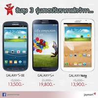 ถือเป็นธรรมเนียมไปแล้ว เมื่อมีการเปิดตัวอุปกรณ์รุ่นใหม่ออกมาเมื่อไหร่ รุ่นที่ออกมาก่อนหน้านี้ย่อมต้องมีการปรับเปลี่ยนราคา อย่างล่าสุดทาง Samsung ได้ประกาศเปิดตัวอุปกรณ์รุ่นใหม่ออกมา ทำให้อุปกรณ์รุ่นที่ออกมาก่อนหน้านี้ต่างเตรียมตัวปรับราคาลง ถือเป็นข่าวดีสำหรับคนที่กำลังมองหาอุปกรณ์เครื่องใหม่ ซึ่งทาง TG Fone และ Jay Mart ได้ออกมาประกาศลดราคา Samsung 3 รุ่น คือ Samsung Galaxy S4, Samsung Galaxy S3 และ Samsung Galaxy Note 8