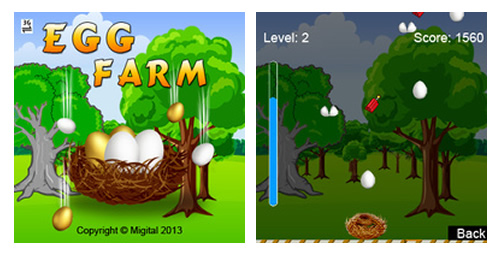 Egg Farm Free เกมที่ผู้เล่นจะได้สวมบทบาทเป็นคนทำงานในฟาร์มไข่ โดยที่คูณจะต้องเก็บไข่ให้ได้ทั้งหมดโดยหลีกเลี่ยงไข่แตกและระเบิด อีกทั้ง พยายามอย่าทำไข่แตก ซึ่งจะเป็นเกมที่แบ่งออกเป็นด่าน เมื่อผ่านด่านแรกจึงจะไปด้านต่อไปได้