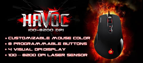 Havoc เป็นอีกหนึ่งในเมาส์ รุ่นใหม่ที่ CM Storm By CoolerMaster ปล่อยออกมาเพื่อตอบสนองชาวเกมเมอร์ทั้งหลายในประเทศไทย Havoc มาพร้อมกับเซนเซอร์คุณภาพสูงจาก Avago 9800 laser sensor สามารถปรับ DPI ได้มาก สุดถึง 8200 DPI เพื่อรองรับเหล่าเกมเมอร์ที่ชื่นชอบการซุ่มยิง sniper [ปรับDPIตํ่า] หรือเกมเมอร์ขาลุยที่ชื่นชอบการใช้ ลูกซองในระยะประชิด [ปรับDPI สูง]