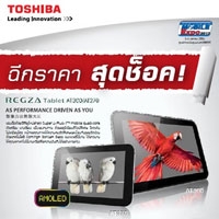 โตชิบา ฉีกราคาสุดช็อค! แท็บเล็ตราคาเริ่มต้นเพียง 9,990 บาท และรับของแถมสุดพิเศษ มูลค่ารวมกว่า 3,480 บาท (เมื่อซื้อรุ่นที่กำหนด) ในงาน Mobile Expo 2013 ณ ศูนย์การประชุมแห่งชาติสิริกิต์ ตั้งแต่วันที่ 3 - 6 ต.ค. 2556 นี้
