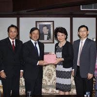 นายวาตารุ นิชิโอกะ (ที่ 3 จากซ้าย) ประธานบริษัท และประธานกรรมการบริหารบริษัท แคนนอน มาร์เก็ตติ้ง (ไทยแลนด์) จำกัด แสดงความขอบคุณต่อ ดร.รัชนีพร พุคยาภรณ์ พุกกะมาน (ที่ 4 จากซ้าย) อธิการบดีมหาวิทยาลัยศรีปทุมที่ให้ความเชื่อมั่นและไว้วางใจเลือกใช้สินค้าและผลิตภัณฑ์เครื่องถ่ายเอกสารของแคนนอน เพื่อให้งานเอกสารและการจัดเก็บข้อมูลของมหาวิทยาลัยศรีปทุมเป็นไปอย่างมีประสิทธิภาพและมีความเป็นมืออาชีพด้วยอิมเมจจิ้ง โซลูชั่นของแคนนอนอันล้ำสมัย ตอบสนองความต้องการทุกแบบของผู้ใช้งานในทุกระดับ