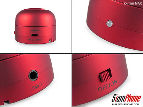 ด้านบนลำโพงมาพร้อมช่องขยายเสียงลำโพง ด้านข้างมาพร้อมพอร์ตเชื่อมต่อ Micro USB สำหรับชาร์จพลังงาน, ไฟแจ้งเตือน LED, ปุ่มปิด-เปิดเครื่อง และช่องเสียบ Audio สำหรับต่อพ่วงลำโพง X-mini MAX หลายๆ ตัวเข้าด้วยกัน เพื่อให้ได้เสียงที่ดังขึ้นกว่าเดิมโดยไม่ทำให้คุณภาพเสียงตกลง ซึ่งเรียกว่าระบบนี้ว่า Buddy Jack