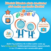 กิจกรรมสุดสนุกที่ให้ทุกท่านลุ้นรับของรางวัลง่ายๆ เพียงโพสต์รูปถ่ายในงานแล้วติด tag #dealfishthai หรือดาวน์โหลดแอพลิเคชั่น dealfish.co.th บนมือถือทั้ง iOS และ Android ก็ได้รับสิทธิ์สอยดาว รับของรางวัลสุดเก๋ที่เราขนมาแจกกันไปเลยฟรีๆ ภายในงานยังพบกับกิจกรรมความสนุกสนานหลายรูปแบบ อาทิ มินิคอนเสิร์ต กิจกรรมจากเหล่าดีเจคลื่นวิทยุชื่อดังของ อสมท. ร้านค้าศิลปินมากมาย ในวันที่ 1-3 พฤศจิกายน 2556 นี้ ณ เอสพลานาด รัชดาภิเษก ติดตามรายละเอียดของงานได้ที่ http://blog.dealfish.co.th/articles/dealfish-ติด-tag-by-mcot/ ชาวเน็ตอย่างคุณไม่ควรพลาด!!