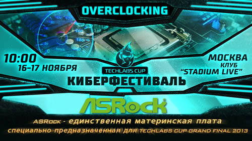 ASRock เตรียมพร้อมเข้าสู่งาน TECHLABS CUP 2013 GRAND FINAL และนี่จะเป็นการแสดงผลิตภัณฑ์ชั้นยอดสู่สาธารณชนครั้งยิ่งใหญ่อย่างแน่นอน! รอบ grand final จะจัดขึ้นในวันที่ 16 – 17 พฤศจิกายนที่ ฮอลล์แสดงงานที่ใหญ่ที่สุดในกรุงมอสโก Stadium Live โดย ASRock จะเข้าร่วมงาน TECHLABS CUP 2013 GRAND FINAL ในฐานะผู้ให้บริการเมนบอร์ดอย่างเป็นทางการ โดยภายในงานจะใช้เมนบอร์ดจาก ASRock ทั้งหมดซึ่งมีเพียงอุปกรณ์ระดับโลกเท่านั้นที่จะถูกนำมาใช้ภายในงานการแข่งขันสำหรับอุปกรณ์ที่เหมาะสมต่อการเล่นเกมและโอเวอร์คล็อคเท่านั้น