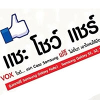 VOX ใจดี แจก Case Samsung ฟรี ไม่อั้น! เพียงแค่ "แชะ โชว์ แชร์" เอาใจคนใช้มือถือนานและเป็นสาวก Samsung ตัวจริง สำหรับรุ่นที่แจกฟรี ได้แก่ Samsung Galaxy Note1, Samsung Galaxy S2, S3, และ S3 Mini