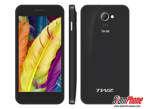 สมาร์ทโฟน TWZ TA18 มาพร้อมหน้าจอสัมผัส IPS-LCD กว้าง 4.5 นิ้ว ความละเอียด 854x 480 พิกเซล, กล้องหลังความละเอียด 2 ล้านพิกเซล และกล้องหน้าความละเอียด VGA, ขับเคลื่อนด้วยหน่วยประมวลผล single core ความเร็ว 1 GHz, รองรับการ์ดหน่วยความจำ MicroSD สูงสุด 32 GB, ความจุแบตเตอรี่ 2,000 mAh, รันบนระบบปฏิบัติการแอนดรอยด์ 2.3, รองรับการใช้งานอินเทอร์เน็ตผ่านสัญญาณ Wi-Fi, 2G (EDGE, GPRS), รองรับการเชื่อมต่อ Bluetooth โดยวางจำหน่ายในราคา 2,290 บาท