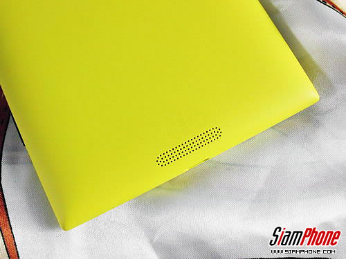 ตัวเครื่องด้านหลัง ผิวด้านหลังเป็นโพลีคาร์บอเนตผิวเรียบ ไม่สะท้อนแสง บริเวณขอบมีความโค้งมนคลุมไปถึงขอบกระจกด้านหน้า