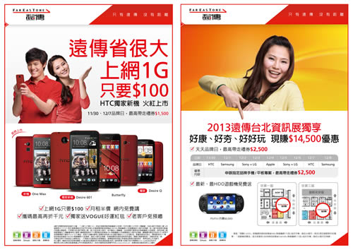 HTC One Max สีแดงถูกค้นพบในการโปรโมทอุปกรณ์รุ่นใหม่ของผู้ให้บริการรายนี้ไต้หวัน ซึ่ง FasEasTone เตรียมเปิดตัว HTC Desire 601, HTC Desire Q ในเวอร์ชั่นสีแดงด้วยเช่นกัน แต่ทาง HTC ยังไม่ได้ประกาศเปิดตัวอุปกรณ์ทั้งสามรุ่นในเวอร์ชั่นสีแดงอย่างเป็นทางการ แต่คาดว่าจะมีข้อมูลออกมาเร็วๆ นี้