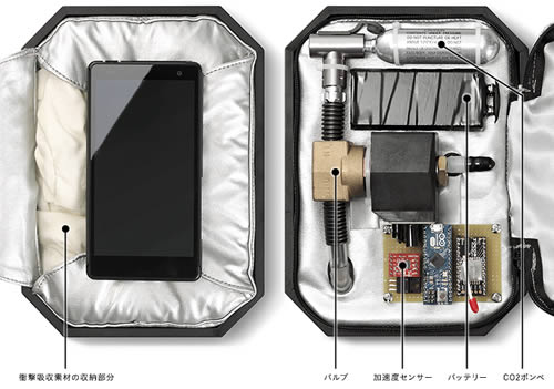 Smartphone Case N เป็นเคสสำหรับสมาร์ทโฟน โดยถูกออกแบบให้มีถุงลมนิรภัยภายในตัว เมื่อสมาร์ทโฟนหล่นหรือกระแทก ถุงลมนิรภัยก็จำทำงานโดยอัตโนมัติ