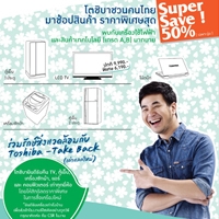 Toshiba เปิดบ้านส่งท้ายปี ชวนคุณมาช็อปเครื่องใช้ไฟฟ้าภายในบ้าน และสินค้าเทคโนโลยี ในราคาพิเศษ ทั้งเกรด A เกรด B มากมายในงาน ‘Toshiba Super Save 2013’ พบกับส่วนลดสุดพิเศษกว่า 50% สำหรับสินค้าเกรดB และส่วนลด 15-30% สำหรับสินค้าเกรดA ไม่ว่าจะเป็นเครื่องใช้ไฟฟ้าภายในบ้านชิ้นเล็ก อาทิเช่น พัดลม, เครื่องฟอกอากาศ, เครื่องทำน้ำอุ่น, เครื่องใช้ไฟฟ้าในครัว-หม้อหุงข้าว, กระติกน้ำร้อน, กระทะไฟฟ้า, เตาอบไมโครเวฟ และสินค้าชิ้นใหญ่อย่าง ตู้เย็นและเครื่องซักผ้า รวมถึงสินค้าโน้ตบุ๊ก และอุปกรณ์ไอทีมากมายหลากหลายรุ่น