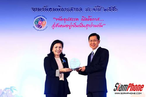 นายพงศ์เทพ เทพกาญจนา รองนายกรัฐมนตรี มอบโล่ประกาศเกียรติคุณแก่กลุ่มทรู ในฐานะองค์กรภาคธุรกิจดีเด่นที่สนับสนุนงานด้านคนพิการ ในงานวันคนพิการสากล ประจำปี 2556 หัวข้อ “ขจัดอุปสรรค เปิดโอกาส...สู่สังคมอยู่เย็นเป็นสุขร่วมกัน” จัดโดยสำนักงานส่งเสริมและพัฒนาคุณภาพชีวิตคนพิการแห่งชาติ ร่วมกับสมาคมสภาคนพิการทุกประเภทแห่งประเทศไทย โดยดร. กันทิมา กุญชร ณ อยุธยา ผู้อำนวยการด้านสื่อสารองค์กร ประชาสัมพันธ์การตลาด และกิจกรรมองค์กรเพื่อสังคม กลุ่มบริษัททรู เป็นตัวแทนรับมอบ เมื่อเร็วๆ นี้ ณ เมืองทองธานี