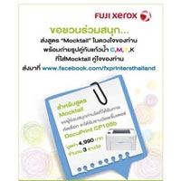 ฟูจิ ซีร็อกซ์ พรินเตอร์ ผู้นำเทคโนโลยีด้านการพิมพ์ระดับโลก จัดกิจกรรมพิเศษ “Inspire Your Idea” เชิญชวนลูกค้าร่วมสนุก ส่งสูตรการทำ Mocktail ในดวงใจ พร้อมโพสต์ท่าถ่ายรูปคู่กับเเก้วน้ำ C, M, Y, K ที่บรรจุ Mocktail ของคุณ เเละส่งมาที่ www.facebook.com/fxprintersthailand สูตรใดปิ๊ง ภาพใดเก๋ ถูกใจคณะกรรมการ ลุ้นสิทธิ์รับ พรินเตอร์สี Fuji Xerox รุ่น DocuPrint CP105b มูลค่า 4,990 บาท ฟรี! ทันที (รีบด่วน! จำนวนจำกัด) เริ่มตั้งแต่วันนี้ถึง 31 มกราคมศกนี้