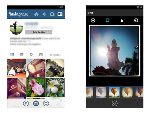 แอพฯ Instagram บนระบบ Windows Phone ช่วยให้การแบ่งปันภาพถ่ายกับผู้คนในแวดวงของคุณง่ายขึ้น มีเครื่องมือปรับแต่งหรือฟิลเตอร์ที่ช่วยเปลี่ยนภาพถ่ายธรรมดาให้เป็นงานศิลปะสวยหรู อีกทั้งยังสามารถเข้าถึงภาพถ่ายของเพื่อนสนิทและบุคคลที่น่าติดตามจากทั่วโลกได้อย่างรวดเร็ว