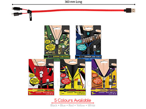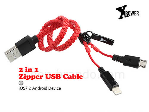 Xpower Zipper Lightning + Micro USB Cable เป็นซิปแนวใหม่ที่ภายในเป็นสาย USB ซึ่งเชื่อมต่อกับพอร์ต microUSB และพอร์ต Lightning โดยสามารถรูดซิปเข้า-ออก เพื่อปรับความพอดีในการใช้งาน สามารถใช้ซิปเป็นสายชาร์จอุปกรณ์สองชิ้นในเวลาเดียวกัน และพอร์ต microUSB ยังรองรับการส่งผ่านข้อมูลความเร็วสูง(high speed transmission)