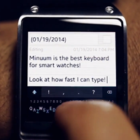 เผยคลิปวิดีโอ Minuum แอพฯ คีย์บอร์ดสองมิติสำหรับอุปกรณ์แอนดรอยด์เมื่อนำไปใช้งานบนนาฬิกา Samsung Galaxy Gear แล้วสามารถพิมพ์ข้อความได้อย่างรวดเร็วแม้ว่าพื้นที่หน้าปัดนาฬิกาค่อนข้างจำกัด