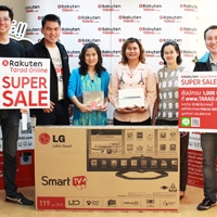 นักช้อปออนไลน์ผู้โชคดีที่คว้ารางวัลจากการซื้อสินค้าออนไลน์ในแคมเปญการตลาด “ราคูเท็น ตลาดดอทคอม ซุปเปอร์ เซลล์” เข้ารับมอบของรางวัลรวม 66 รางวัล อาทิ แอลอีดีสมาร์ทีวี 47 นิ้ว กล้องฟูจิ X-M1 และ iPad Air 32GB iPad mini 16GB นาฬิกา Emporio Armani Classic Watch และ Samsung Galaxy note 3 และรางวัลอื่นๆ รวมมูลค่ากว่า 300,000 บาท จากผู้บริหาร ราคูเท็น ตลาดดอทคอม