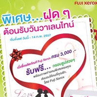 FUJI XEROX Printer ผู้นำเทคโนโลยีด้านการพิมพ์ระดับโลก จัดโปรโมชั่นสุดหวานสมนาคุณลูกค้าที่เป็นคู่รัก ต้อนรับวาเลนไทน์ปีนี้ พิเศษ! เพียงซื้อผลิตภัณฑ์ของฟูจิ ซีร็อกซ์ ไม่ว่าจะเป็นเครื่องพิมพ์, ตลับหมึก, หรือกระดาษ มูลค่ารวม 3,000 บาท ขึ้นไป รับฟรี! กรอบรูปวาเลนไทน์พร้อมภาพถ่ายคนพิเศษ จากฟูจิ ซีร็อกซ์ ส่งตรงถึงบ้าน เริ่มแล้ววันนี้ – 14 กุมภาพันธ์ ศกนี้