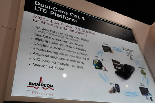 Broadcom บริษัทผู้ผลิตชิปสารกึ่งตัวนำประกาศเปิดตัวชิป M320 LTE SoC (dual-core) ซึ่งออกแบบมาเพื่อนำไปใช้งานบนสมาร์ทโฟนที่มีราคาต่ำกว่า $300 ดอลลาร์สหรัฐฯ (ต่ำกว่า 10,000 บาท) โดยชิปรุ่นนี้ครอบคลุมการใช้งานเครือข่าย LTE ในหลายคลื่นความถี่