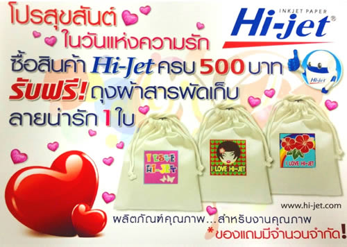 บริษัท ปภาวิน จำกัด ผู้จัดจำหน่ายผลิตภัณฑ์กระดาษและหมึกสำหรับเครื่องพิมพ์อิงค์เจ็ท กระดาษสำหรับเครื่องพิมพ์เลเซอร์ ภายใต้แบรนด์ Hi-jet จัดโปรโมชั่นพิเศษด้วยการจัดโปรสุขสันต์ ในวันแห่งความรัก ต้อนรับเทศกาลวันวาเลนไทน์