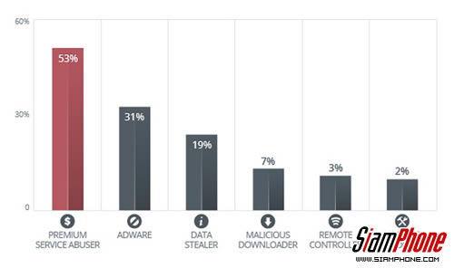 รูปที่ 4. ประเภทของภัยคุกคามในรูปของมัลแวร์มือถือ