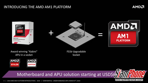 AMD ประกาศเปิดตัวเมนบอร์ดแพลตฟอร์มใหม่ AM1 ซึ่งมาพร้อม .APU แบบสี่แกนและแบบสองแกนที่มีโค้ดเนมชื่อ “Kabini” ของ AMD สำหรับนักพัฒนาระบบ เมื่อประกอบรวมกับแผงวงจรหลักจากบริษัทผู้ผลิตชั้นนำต่างๆ
